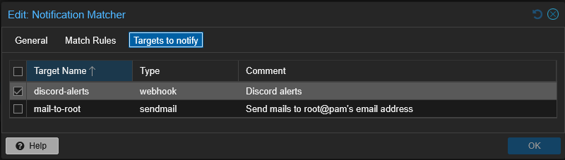- Datacenter → Notifications → Matchers → Modify